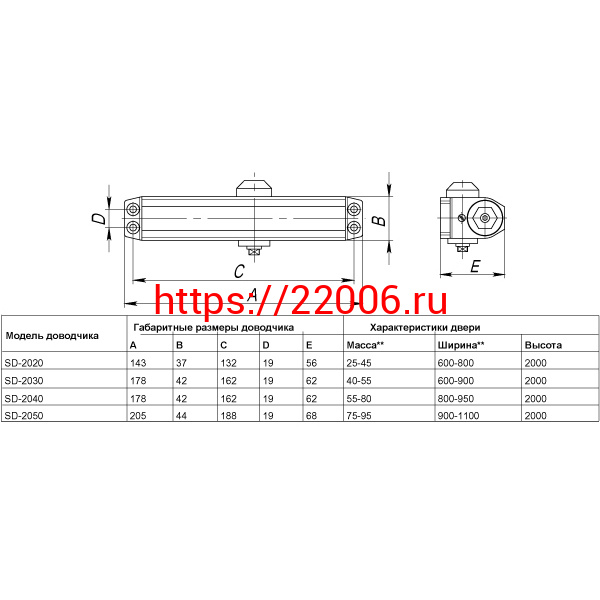 - Доводчик Punto (Пунто) дверной SDC2040 (SD-2040) BL 55-80 кг (черный) в Ставрополе недорого