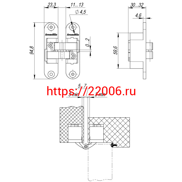 - Петля Armadillo (Армадилло) скрытой установки U3D4200R CP правая (Architect 3D-ACH 40) хром 40 кг в Ставрополе недорого