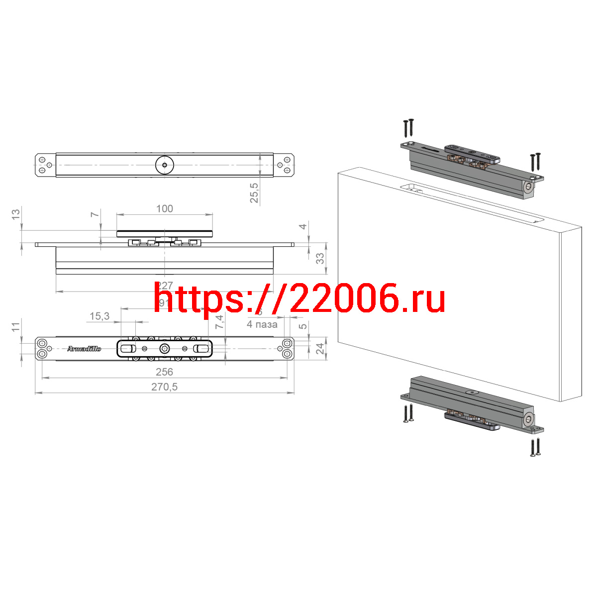 - Комплект Armadillo (Армадилло) для маятниковых дверей Pivot.150.FIX в Ставрополе недорого