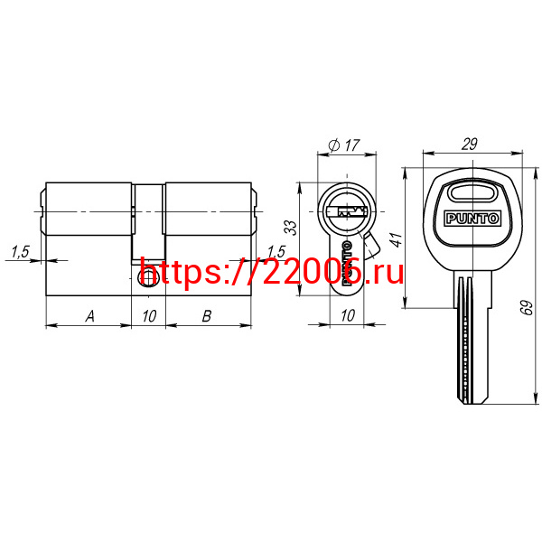 - Цилиндровый Punto (Пунто) механизм (A200/90) A2000Key90(30+10+50) SN никель в Ставрополе недорого