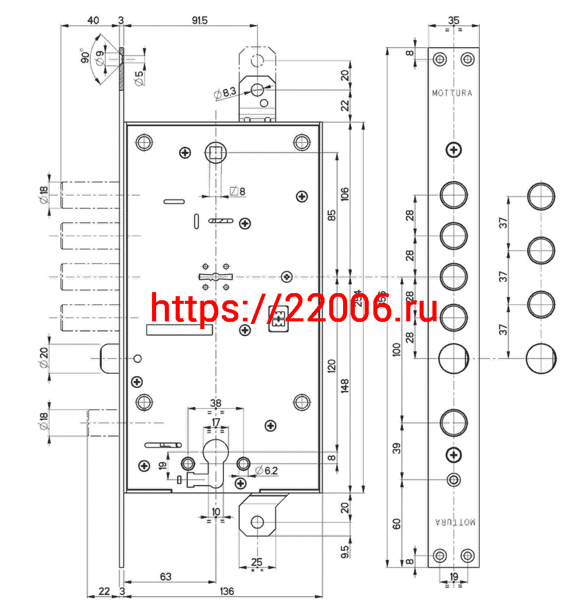 - Замок Mottura (Моттура) врезной двухсистемный 54.797-D (правый) (без накладок), ключ 60 мм в Ставрополе недорого