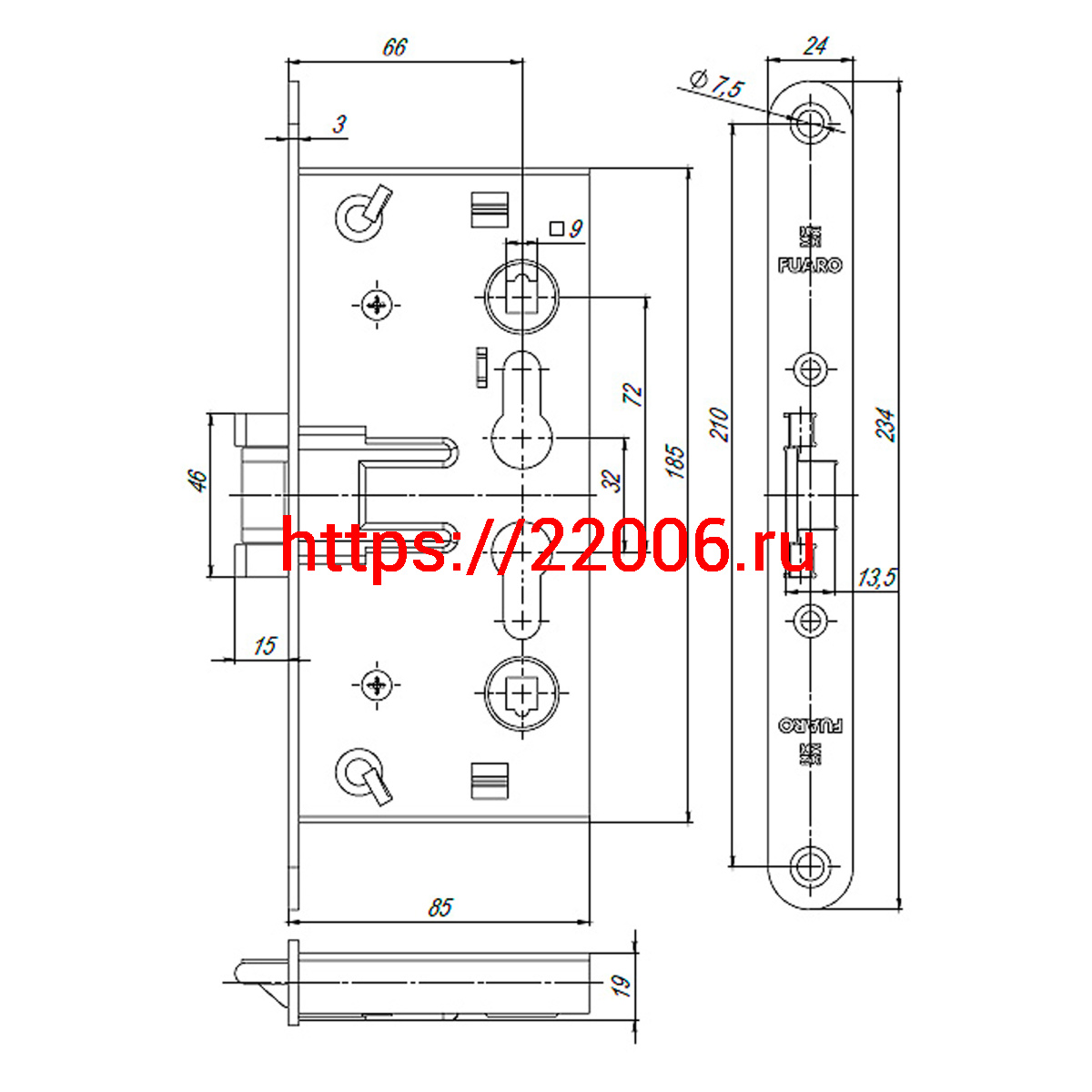 - Корпус Fuaro (Фуаро) врезного замка c защёлкой FP.C-65.72-0432 (FL-0432) в Ставрополе недорого