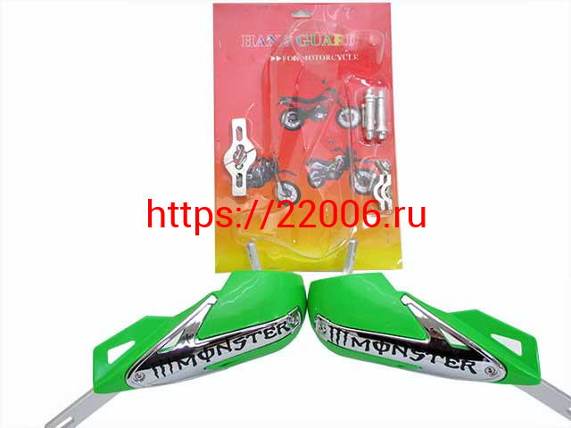 - Защита рук алюминиевая универсальная с креплением на 22 руль зеленая Monster в Ставрополе недорого