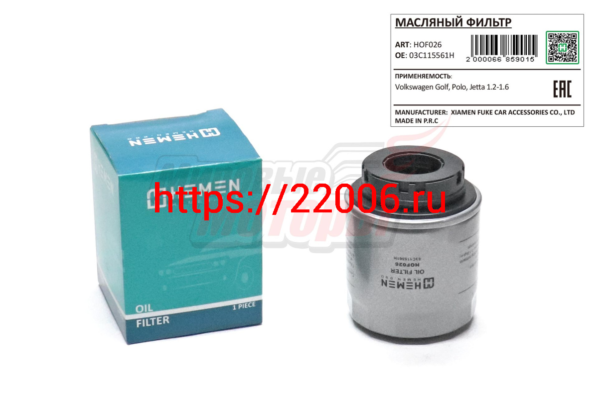 - Фильтр масляный Volkswagen Golf, Polo, Jetta 1.2-1.6 (HOF026) в Ставрополе недорого