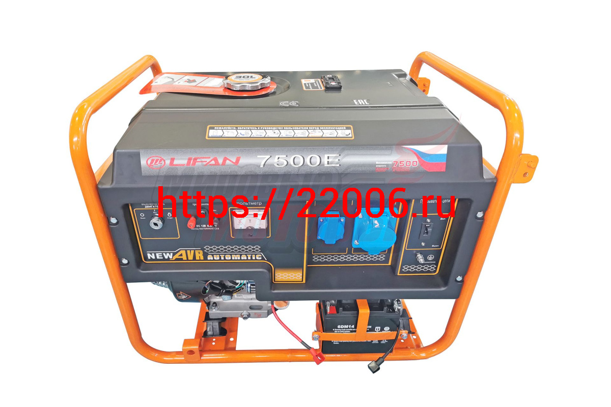 - Генератор бенз. "LIFAN" 7GF-7(LF7500Е)(ном.7кВт,4т. KP460E,бак 30л.,87.5кг, электростартер, медн.обм.альтернатора, AVR, 3/6 л/ч,колеса) в Ставрополе недорого