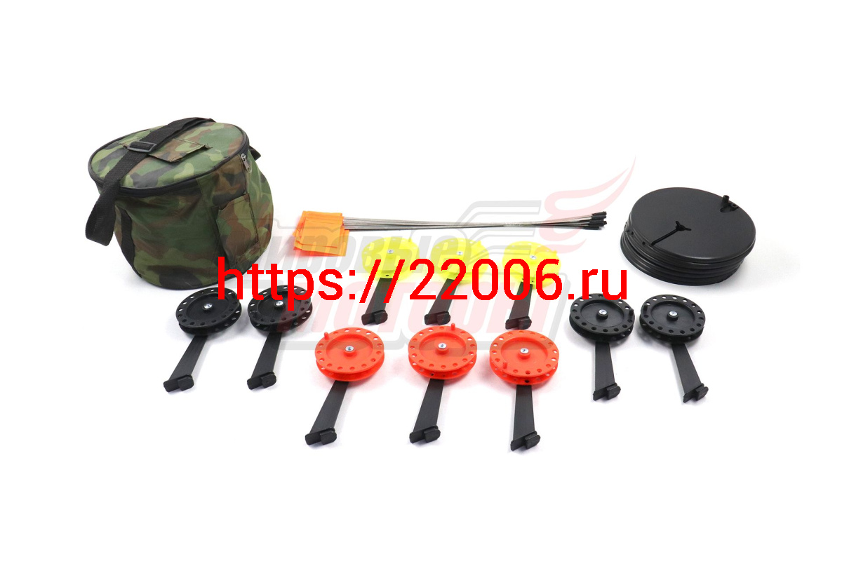 - Набор жерлиц с угловой стойкой в сумке с цветными катушками d.85-90 Три кита (10шт в Ставрополе недорого
