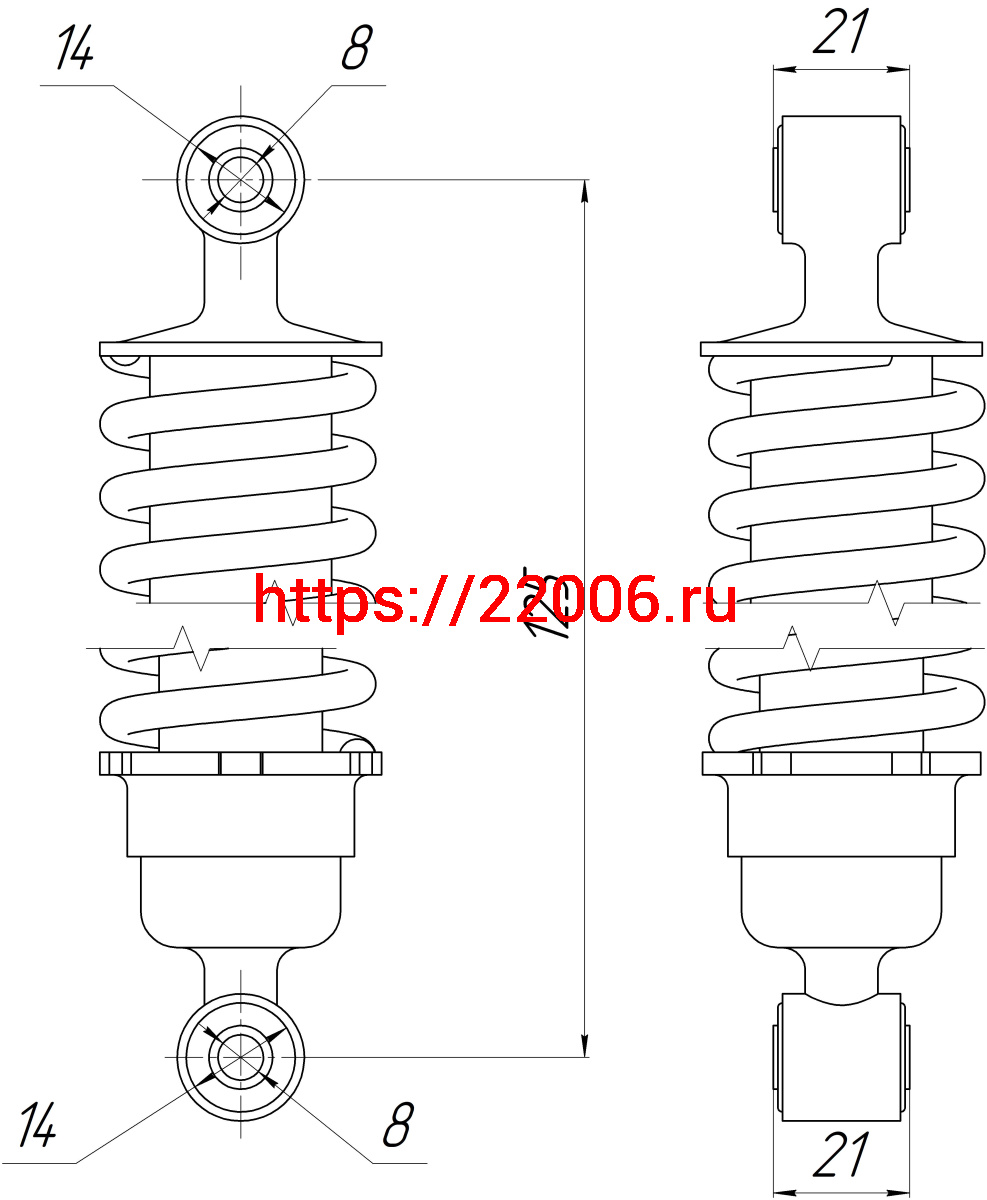 - Амортизатор зад., перед. L-125, D1-14, d1-8, Н1-21, D2-14, d2-8, Н2-21 BINGO в Ставрополе недорого