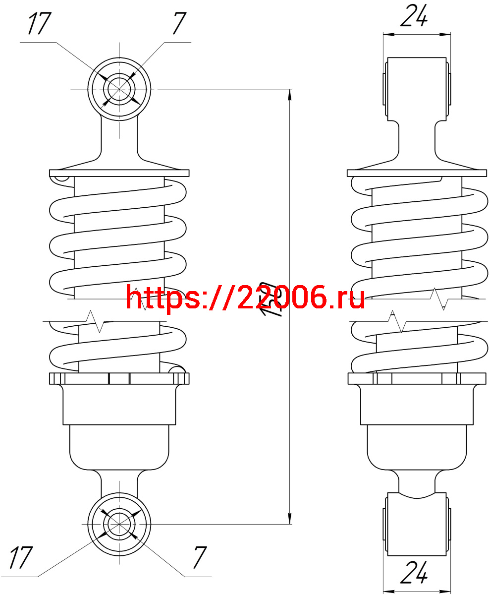 - Амортизатор зад., перед. L-150, D1-17, d1-7, Н1-24, D2-17, d2-7, Н2-24 CASPER в Ставрополе недорого