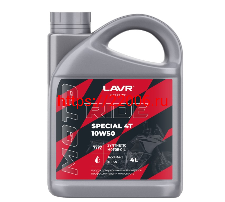 - Масло LAVR MOTO RIDE SPECIAL для 4т двиг.,синтетика, SAE 10W50, API SN JASO MA/MA2, 4литра (Ln7792) в Ставрополе недорого
