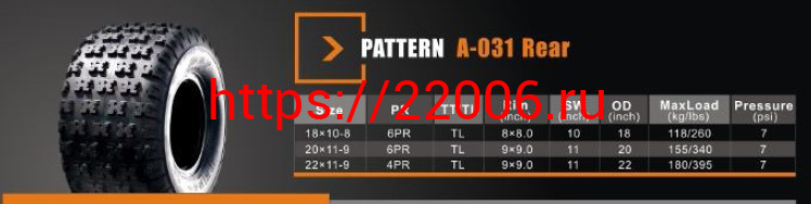- Покрышка ATV 9" 22 х 11,00 - 9 (А-031) без камеры, задние SUN.F в Ставрополе недорого