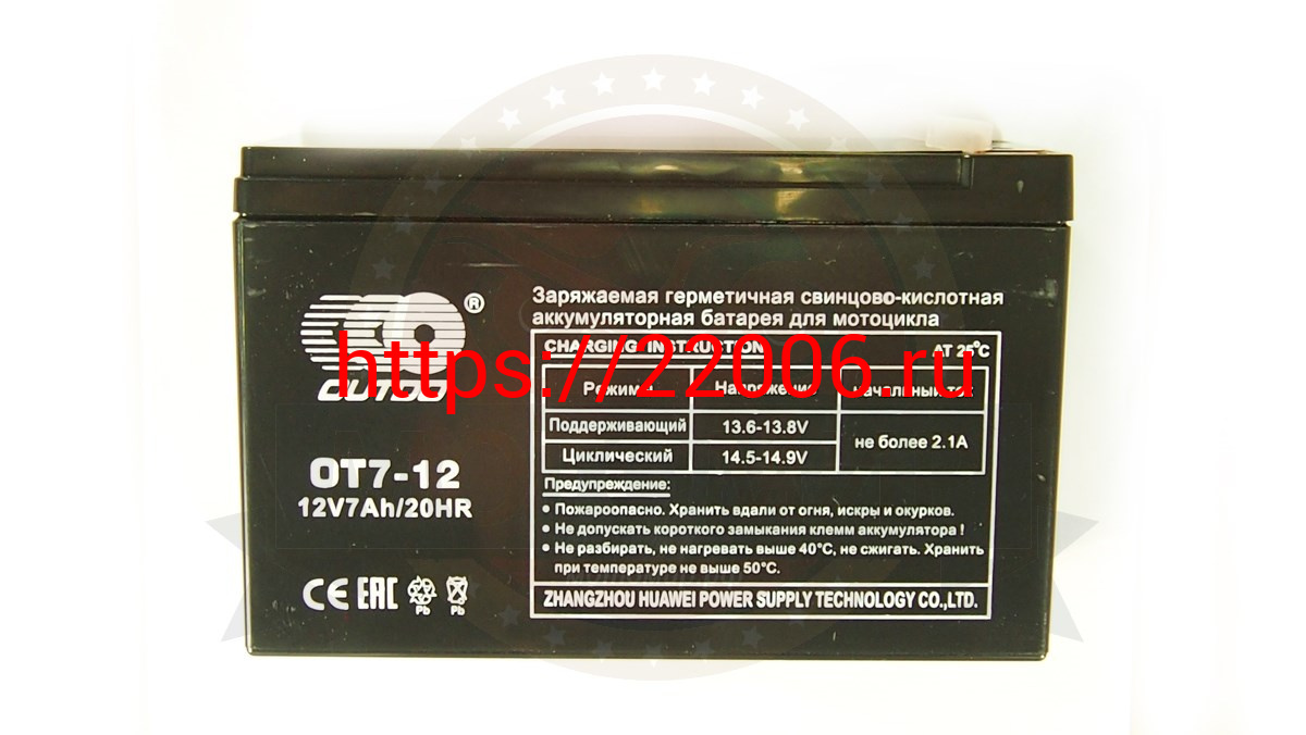 - Аккумулятор 12В 7 А/ч, кислотный AGM OТ7-12, OUTDO (151х65х94х100по_клеммам) гориз.клеммы справа в Ставрополе недорого