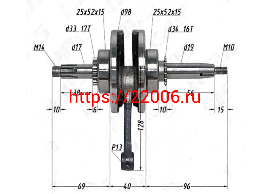 - Коленвал 152FMI,153FMI 125 Шторм125 (палец 13мм, шатун 130мм) DINGO/TTR125 в Ставрополе недорого