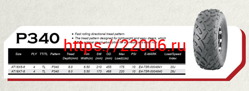 - Покрышка ATV 8" 18 х 8.00 - 8 (Р340) без камеры, WANDA в Ставрополе недорого